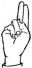 На ћирилици написано РАДОВАН ДАБИЋ састоји се из 12 слова [?]. Исписано ћириличном једноручном азбуком за глувонеме: